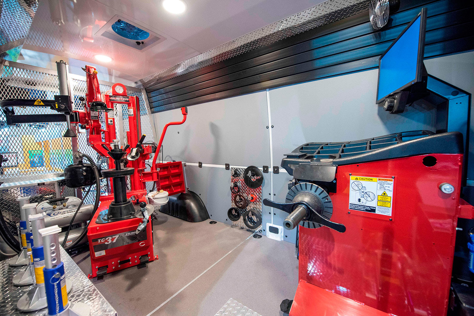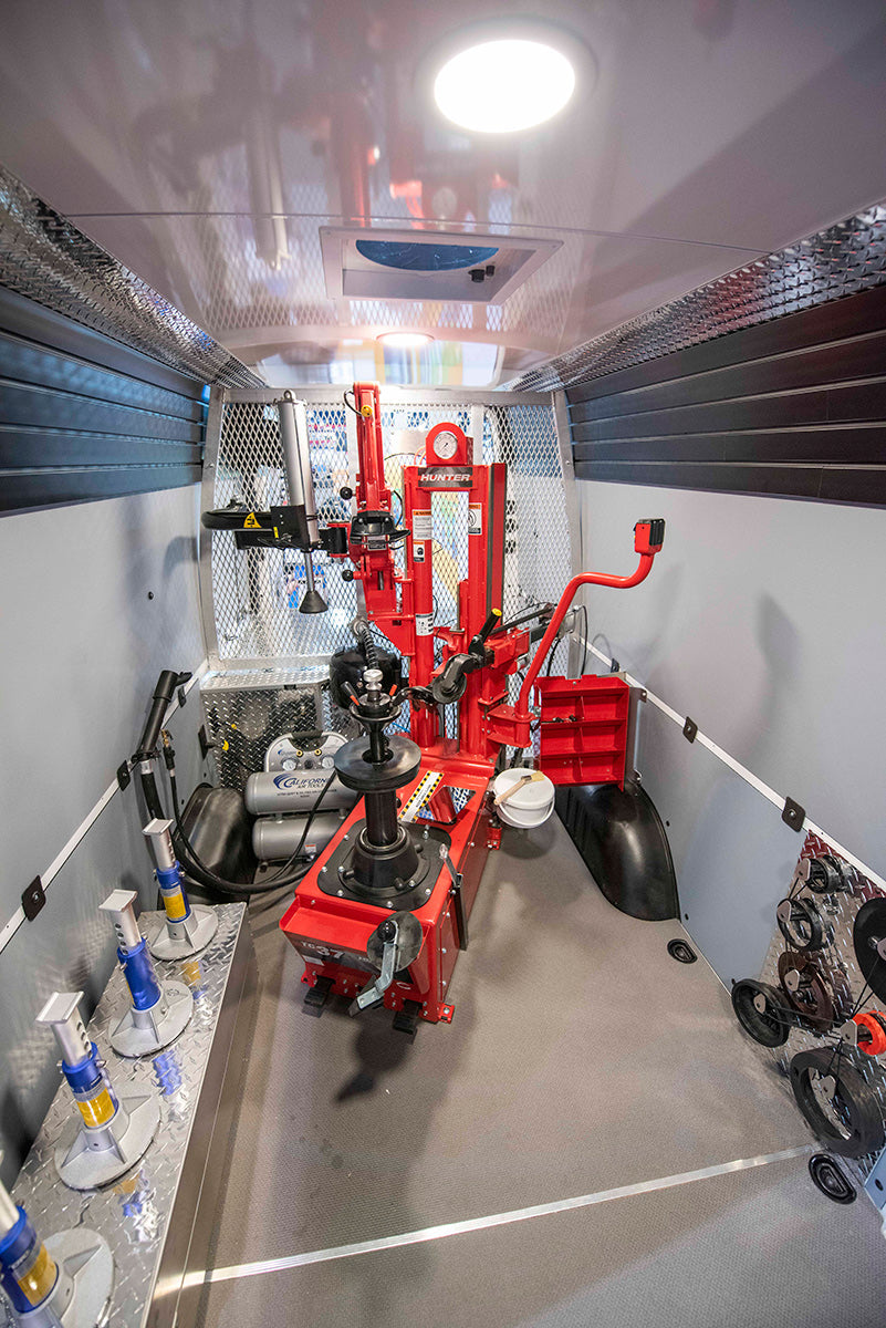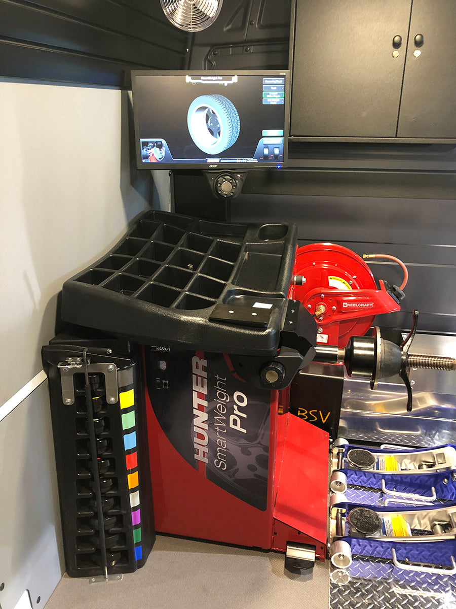 I work out of a 2017 Ford Transit Van. Equipped with a lift gate, On board air, and all the necessary tools to patch, replace, or swap tires at your location.